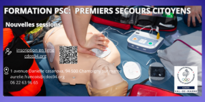 🚑 Formation Premiers Secours Citoyens . Date : Vendredi 13 Mars 2026/ 5 Juin 2026 Lieu : CDOS du Val-de-Marne – 1 avenue Danielle Casanova, Champigny-sur-Marne Le Comité Départemental Olympique …