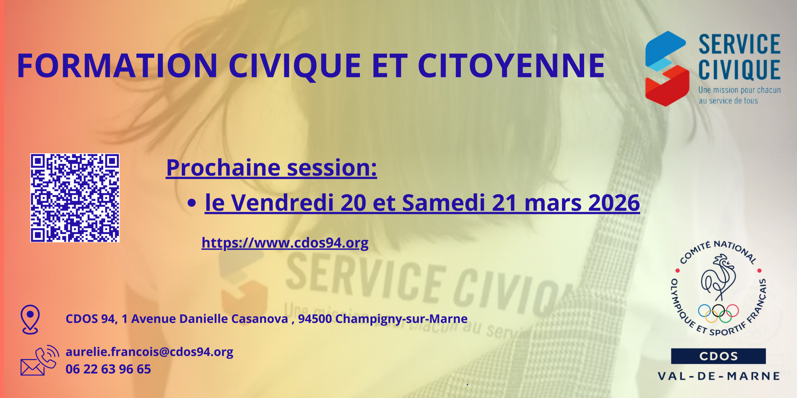 Formation Civique et Citoyenne ! 📣 Formation FCC! Le CDOS 94 est heureux de vous annoncer une nouvelle session de formation pour tous ceux désirant passer la formation FCC . 😊 …
