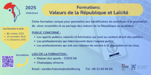 VRL: 2 formats- 1 journée de sensibilisation ou 2 journées de formation . 📣 Formation Valeurs de la République et Laïcité ! Le CDOS 94 est heureux de vous annoncer de nouvelles …